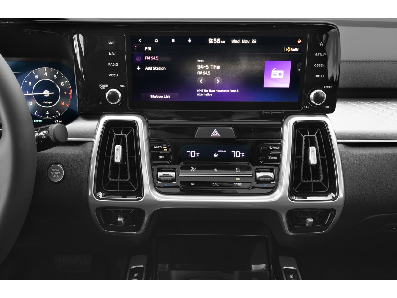 - Radio: AM/FM Audio System -inc: 10.25" touchscreen, navigation, telematics, modem, HD Radio, Bluetooth w/audio remote control and voice recognition, wired Android Auto/Apple CarPlay, USB, 6 speakers and SiriusXM